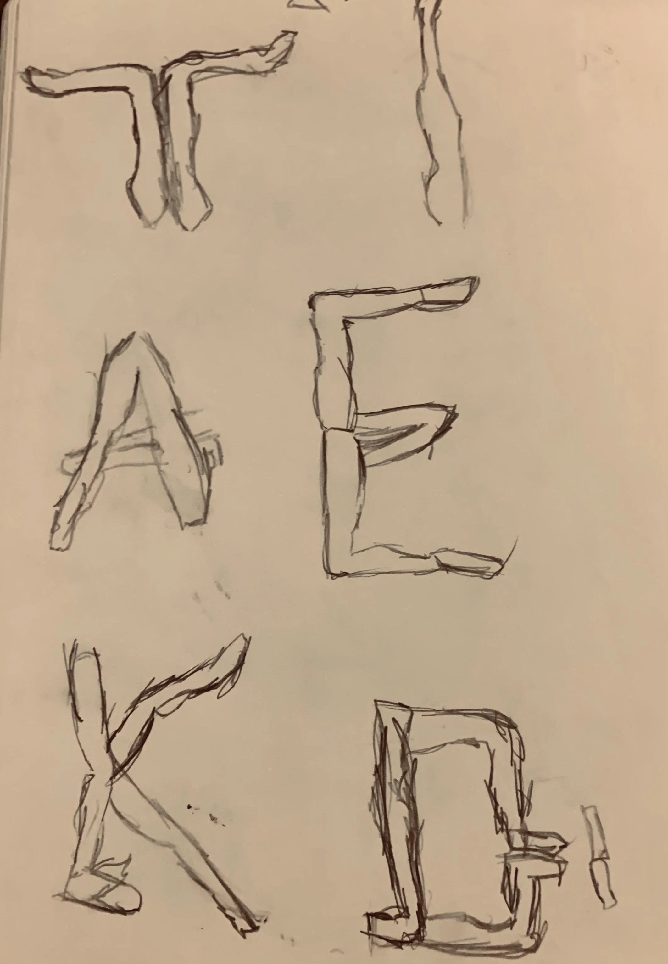 More sketches of letters.