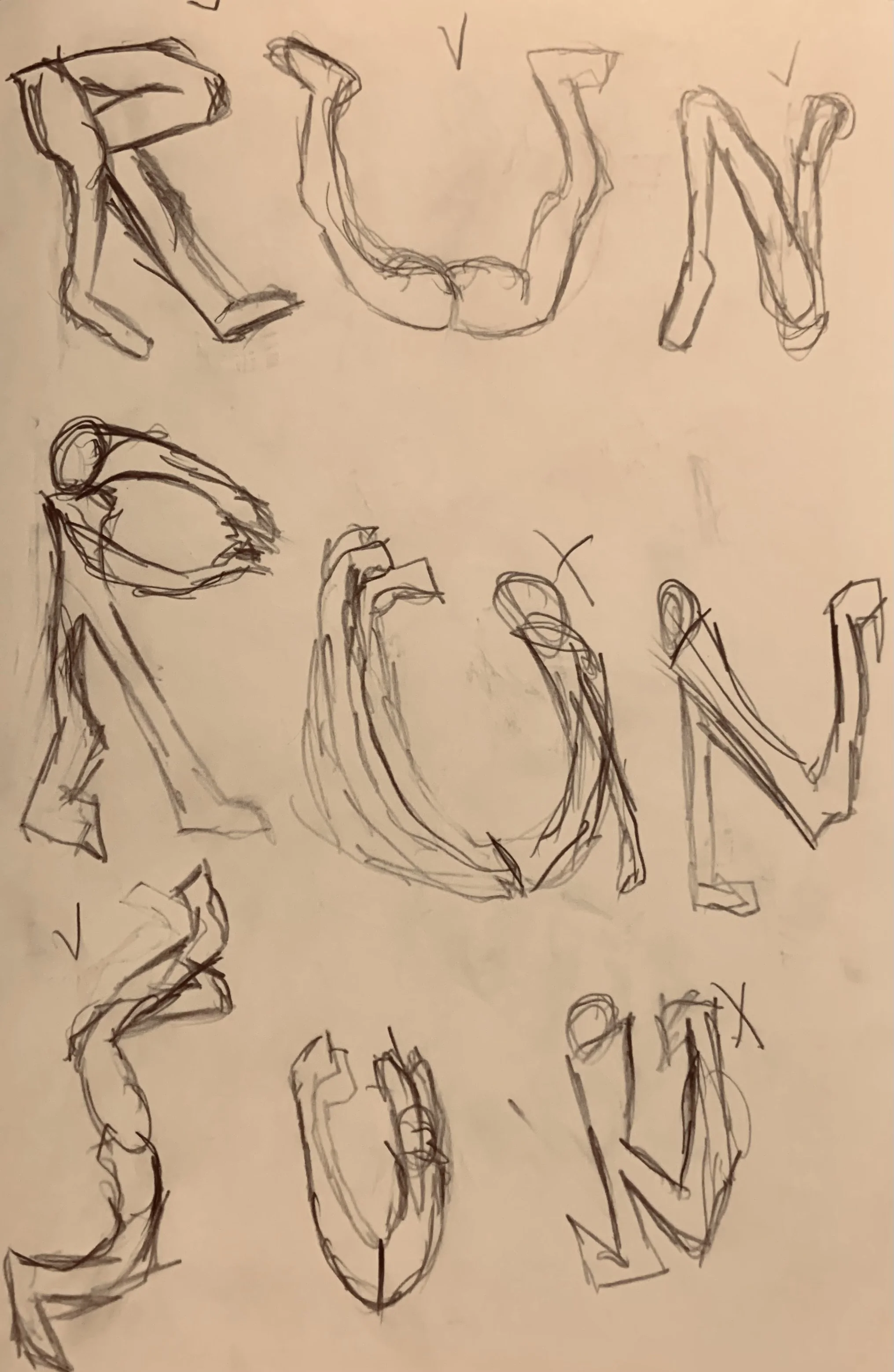 The letters are drawn to look like legs on a run.
